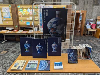 今月24日(火曜日)まで県立図書館1階の展示ホールにて、佐賀県流通・貿易課が『鍋島焼 350周年について』をテーマに展示を行っています。