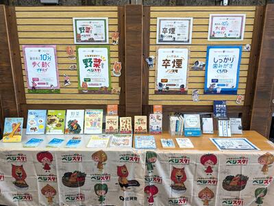 県立図書館正面ロビーでは、健康づくりに関するリーフレットや本を展示中です。