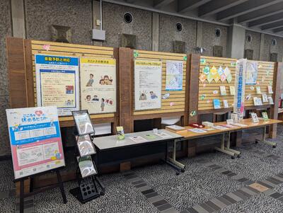 メンタルヘルスに関する書籍や絵本の紹介、パンフレットやグッズの配布、相談窓口を掲載したリーフレットの設置などを行っております。