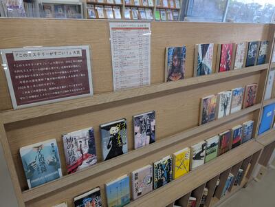 【今月の館内展示】『このミステリーがすごい!』大賞 投稿日時 : 11:24 図書館管理者 カテゴリ:現在の展示 『このミステリーがすごい!』大賞は、2002年に創設されたミステリー小説の新人賞です。 応募対象が幅広く、受賞作品からは多くのベストセラーが誕生しています。 今年の大賞受賞作『龍犬城の絶対者』犬丸幸平/著は2026年1月に刊行予定です。 この機会にミステリーの面白さに触れてみませんか? 展示している本のリストはこちら(別ウィンドウ)からご確認できます。